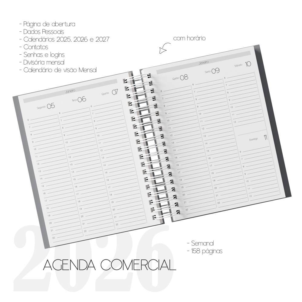 Brinde: Bolso interno, Marcador de páginas e fechamento em elástico ou botão