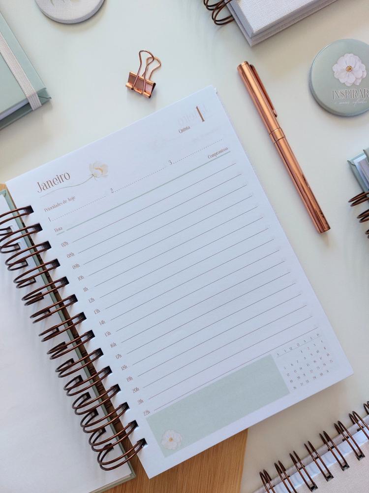 Brinde: Bolso interno, Marcador de páginas e fechamento em elástico ou botão
