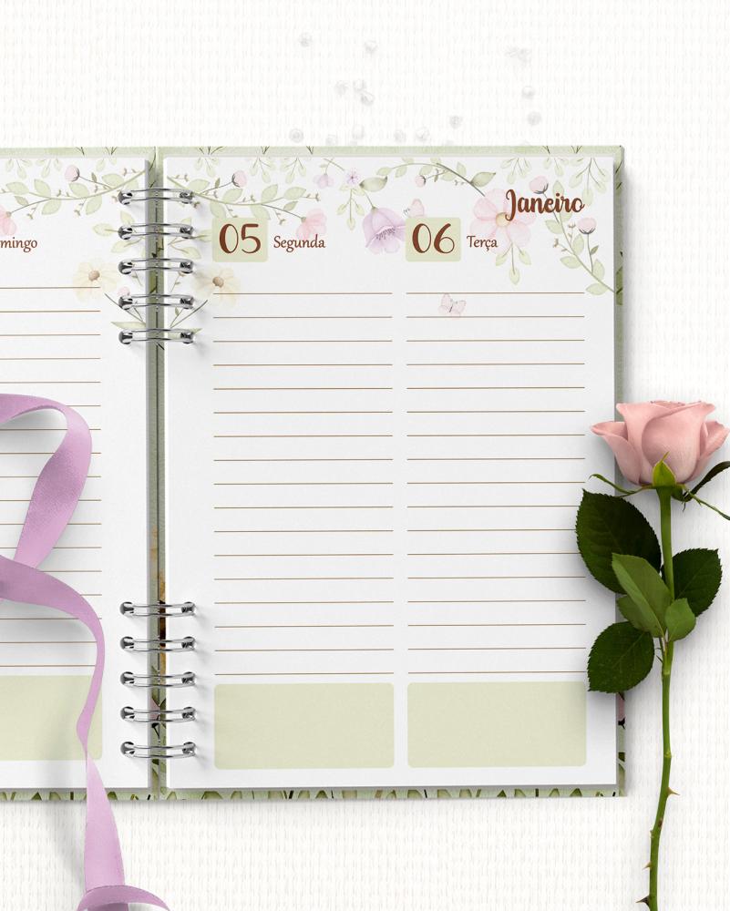 Brinde: Bolso interno, Marcador de páginas e fechamento em elástico ou botão