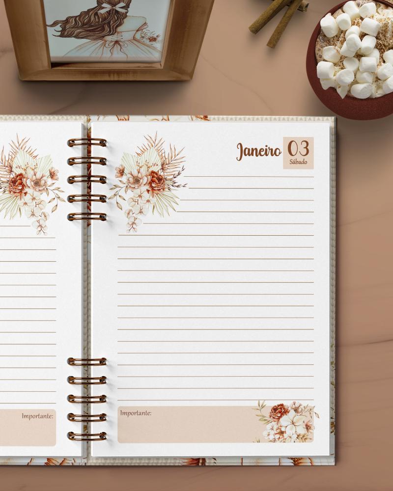 Brinde: Bolso interno, Marcador de páginas e fechamento em elástico ou botão