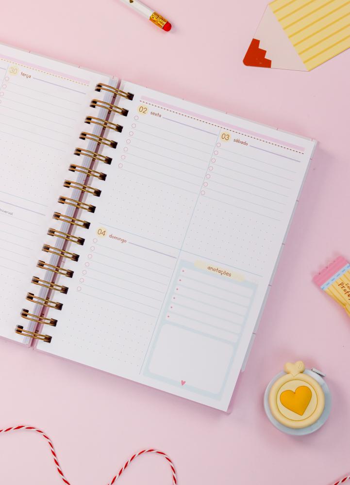 Brinde: Bolso interno, Marcador de páginas e fechamento em elástico ou botão