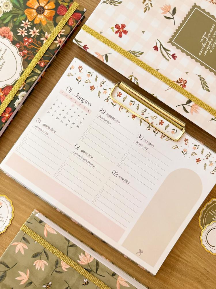 Planejador Semanal Clip Prancheta Dourado - Datado 2026